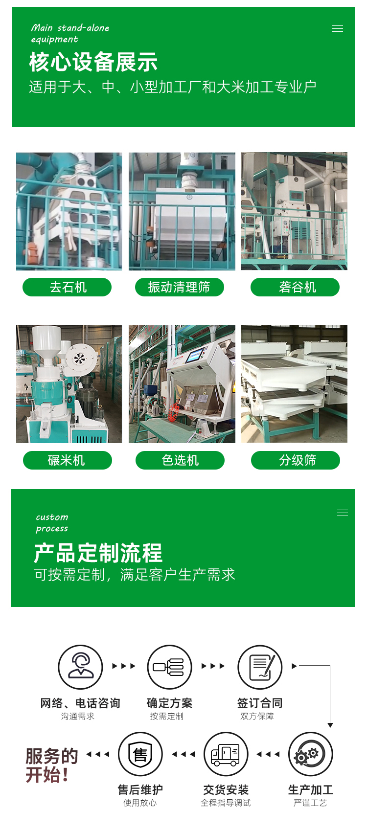 2、設(shè)備先進,本成套設(shè)備配備了我公司的**清理設(shè)備、**脫殼設(shè)備、新型碾磨設(shè)備以及大米**分級設(shè)備。這些新技術(shù)與設(shè)備的應(yīng)用,使得設(shè)備具有出米率高,碎米率低且成品米金燦明亮。